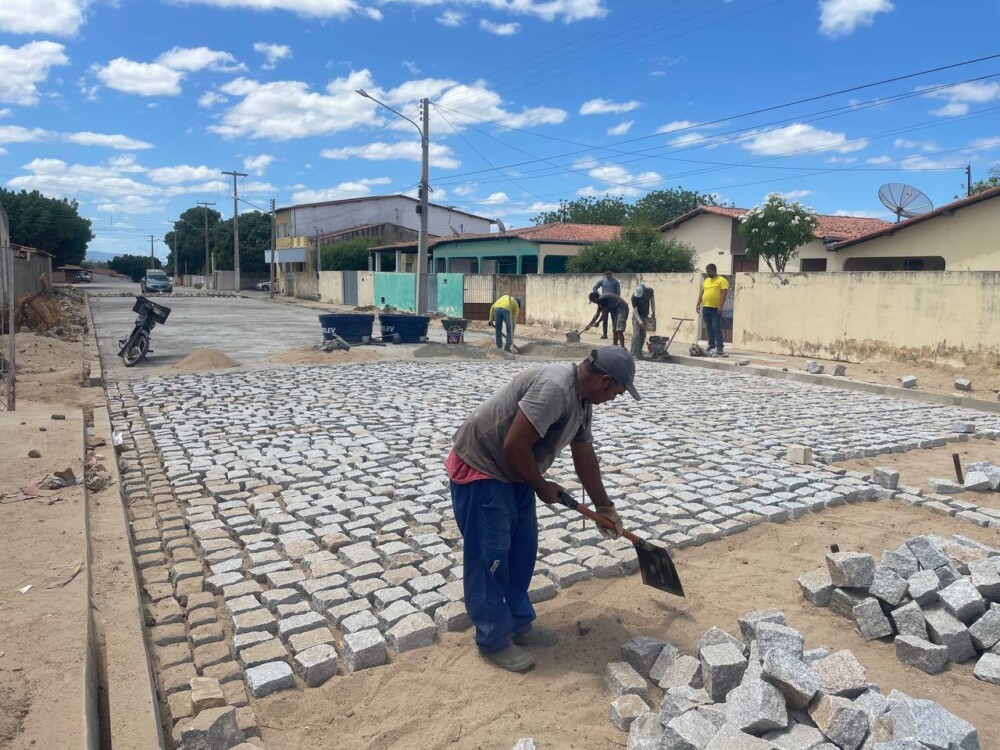 Obras de pavimentação na Rua Silvestre Marinheiro de Souza estão em andamento.